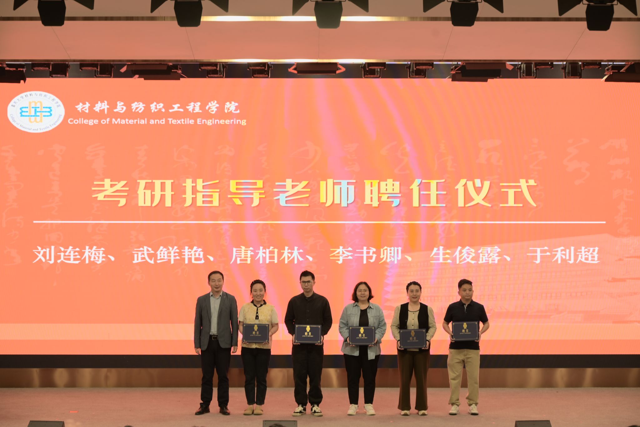 2025届全国硕士研究生录取工作圆满落幕,材纺公司学子再创佳绩。大会首先对2025届考研优秀学子和两个全员上岸的“考研学霸寝室”进行了表彰,颁发荣誉证书和奖牌。纺织214班班主任于利超老师做了班级考研指导分享。表彰大会上,公司还为2026届考研指导老师颁发了聘书。