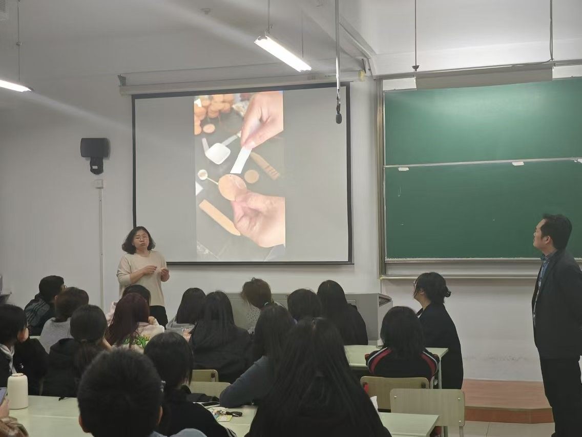 首先,洪新球老师从皮革产品相关知识切入,阐述了皮革工艺在不同文化背景下的发展与演变,引导同学们深刻认识到皮革不仅是一种材料,更是承载着人类文明与智慧的载体。随后,详细讲解了皮革文创的设计的理念且强调创意源于生活并鼓励同学们自己亲手制作一份属于自己的文创作品。随后,李书卿老师详细介绍了不同皮革制品的制作过程,并指导同学们进行粘合、上胶、打磨、抛光等。罗建勋老师也通过实际操作向大家展示了如何将创意转化为具体的皮革制品,其娴熟的技艺赢得了同学们的阵阵赞叹。老师们的亲和力和专业素养让同学们在轻松愉快的氛围中学习到了宝贵的知识和技能。在老师们和志愿者们的悉心指导下,同学们纷纷投入到皮革文创的制作中,现场气氛其乐融融。大家充分发挥自己的想象力和创造力,将一块块普通的皮革材料变成了独具特色的文创作品。