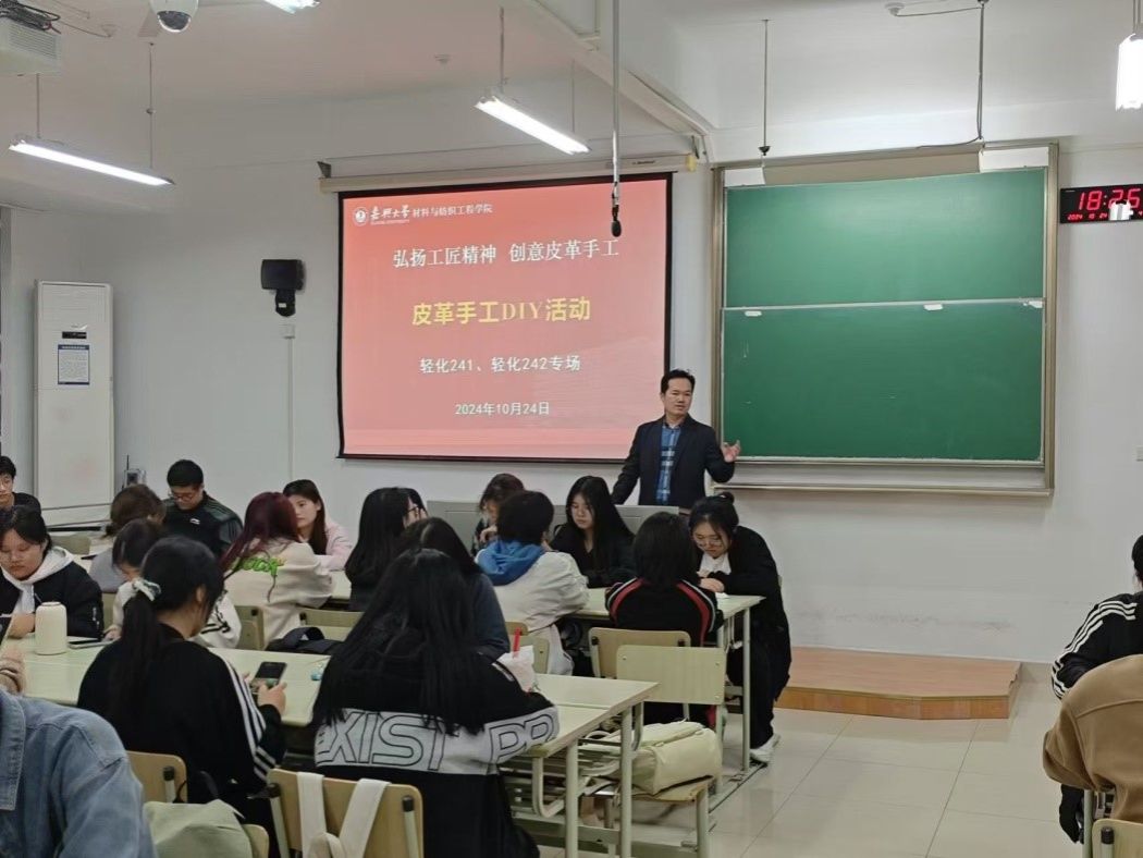 为了进一步提升大一新生对专业的认知度和感知专业的魅力,公司轻化工程系于10月24日晚举办了一场别开生面的皮革手工DIY活动。轻化工程系主任罗建勋教授、洪新球老师和李书卿老师、轻化241、轻化242全体同学及轻化(专升本)241班志愿者参加此次活动。活动由洪新球老师主持。