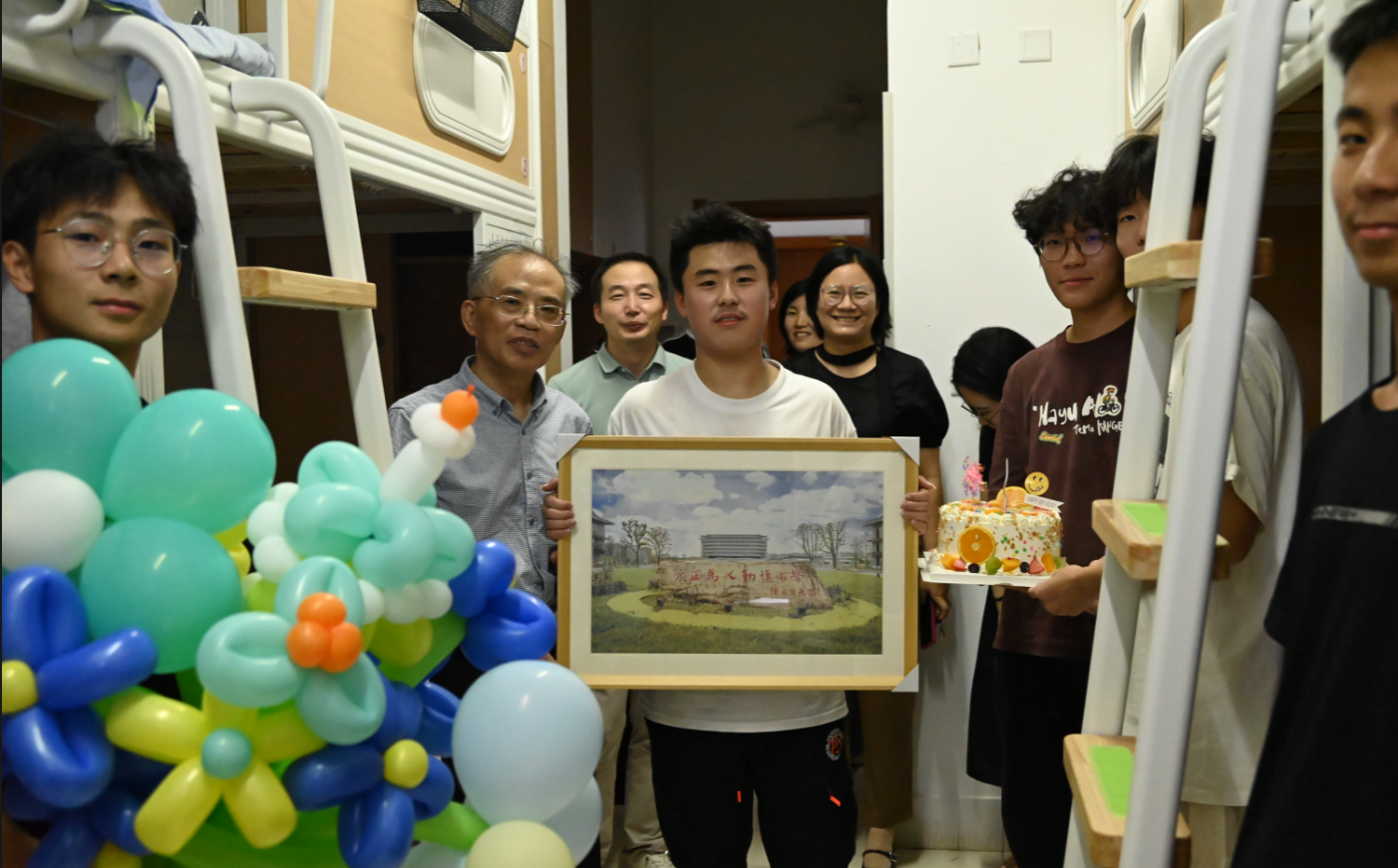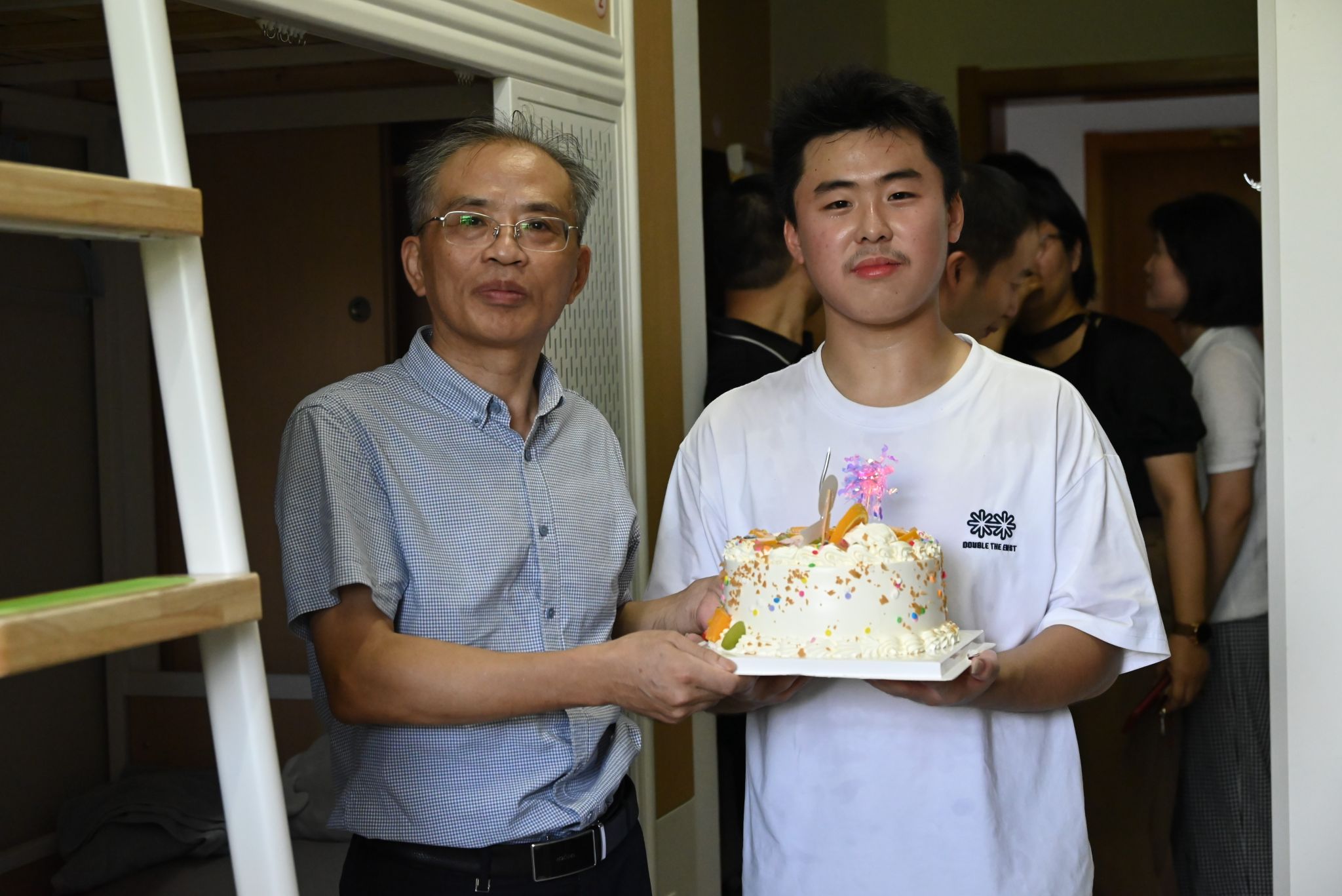 走访当天,恰逢一名2024级新生的18岁生日,公司特意准备了生日惊喜,用满满的仪式感为新生开启老员工活的序幕。钱书记为“小寿星”送上独特的生日礼物——一幅印有“方正为人 勤慎治学”嘉大校训的织物作品,递上生日蛋糕,给予了暖心祝福。小寿星从最初的惊讶到惊喜再到感动,他说:“领导老师们在报到当天很忙碌,但还是特地给我准备了这些礼物,我非常感谢,这让我更加坚定了在嘉大逐梦的信心,未来将勇于探索、不懈追求,努力在专业领域绽放光彩。”