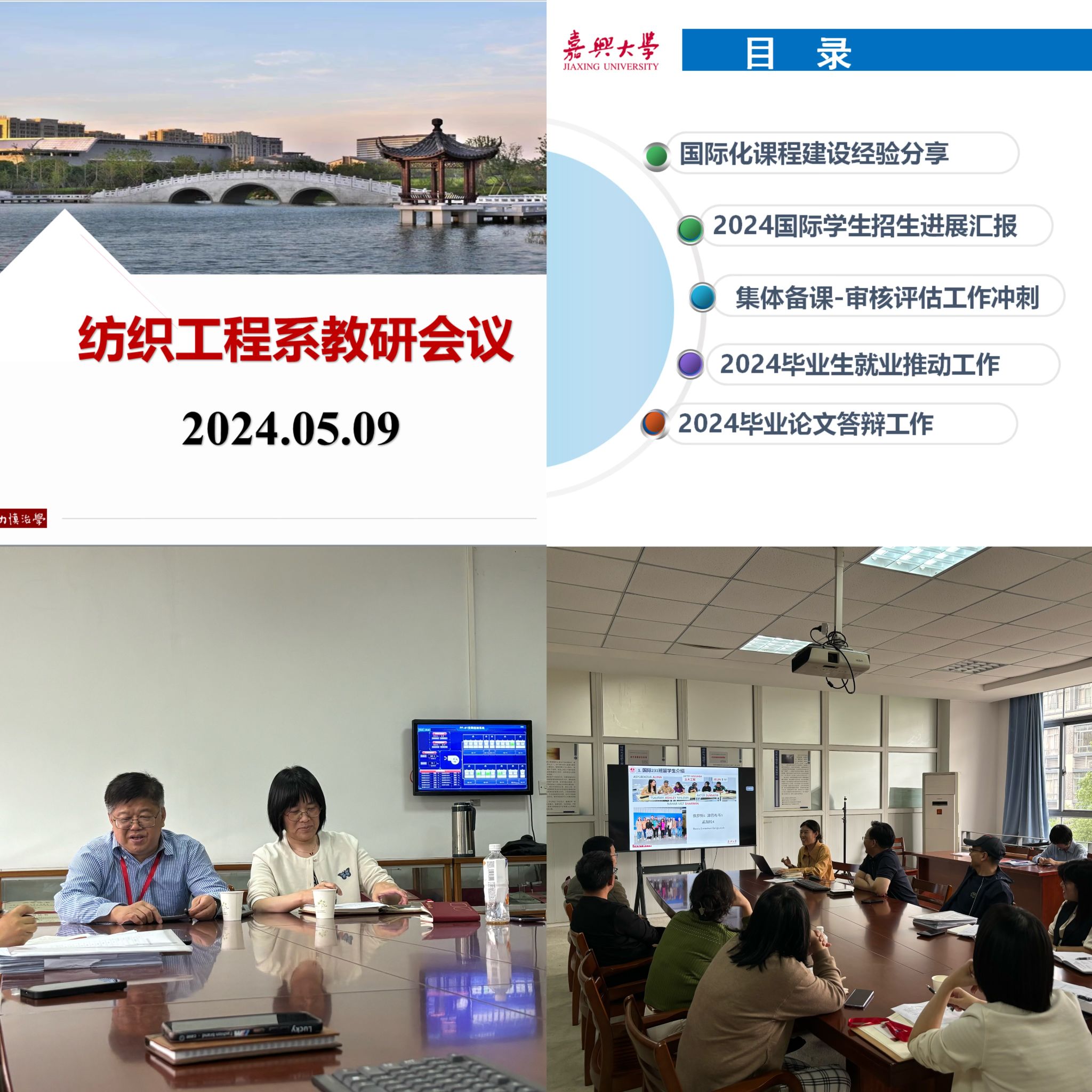 本次教研活动围绕国际化课程建设、国际员工招生、集体备课、员工就业、毕业设计,期中教学检查等内容开展。武鲜艳介绍了纺织工程系国际化课程目前建设现状及规划,2024国际员工招生进展,李艳艳老师分享了她在《专业导论(留)》国际化课程建设方面的经验。截至目前,纺织工程系共建有校级国际化课程建设项目5项,未来将进一步推动国际化课程建设,力争获批省级一流本科国际化课程,为国际化人才培养贡献力量。