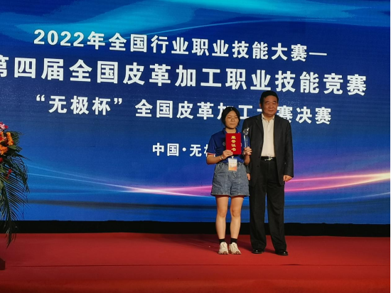 决赛内容由理论考试(占30%)和实操考试(占70%)两部分组成,理论考试内容包括职业道德、专业基础知识和皮革加工专业知识,实操考试则为提供样品的涂饰操作,时长120分钟。经过紧张激烈的竞赛、裁判组的严谨评审和科学的信息数字化管理系统的统计,公司轻化工程系于丽丹同学、陈欣怡同学、顾林锋同学分别夺得了本次大赛总决赛员工组的第一名、第二名和第三名,何叶青同学、余泽新同学分别获得了第五名和第八名,公司被授予优秀组织奖。中国轻工业联合会副会长、中国皮革协会理事长李玉中、无极县县委书记封立新、中国财贸轻纺烟草工会轻工烟草工作部部长杨栋国、中国皮革协会副理事长陈占光等领导为获奖选手颁奖。