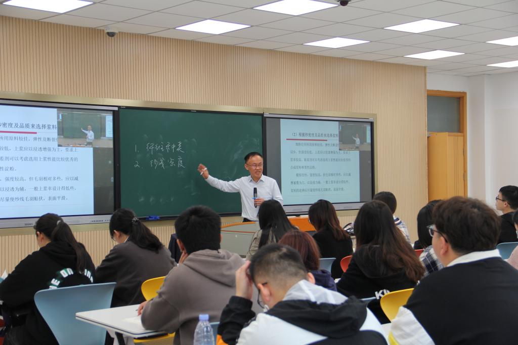 10月27日上午,云顶7610线路检测“一流课程系列公开示范课”在兴礼楼209智慧教室继续开讲。本次公开示范课为《机织学》,是省一流课程、省课程思政示范课程,由嘉兴公司教学名师黄立新教授主讲。