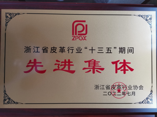 公司被浙江省皮革行业协会授予“浙江省皮革行业‘十三五’期间先进集体”