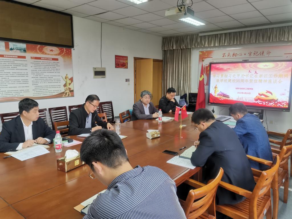 428日,材纺公司党委在419会议室召开座谈会,学习贯彻习近平总书记在浙江工作期间致公司建校90周年贺信精神。公司党委书记韩宝明主持座谈会,公司党政班子成员、各党支书记、系部及科室负责人、教师代表等参加。