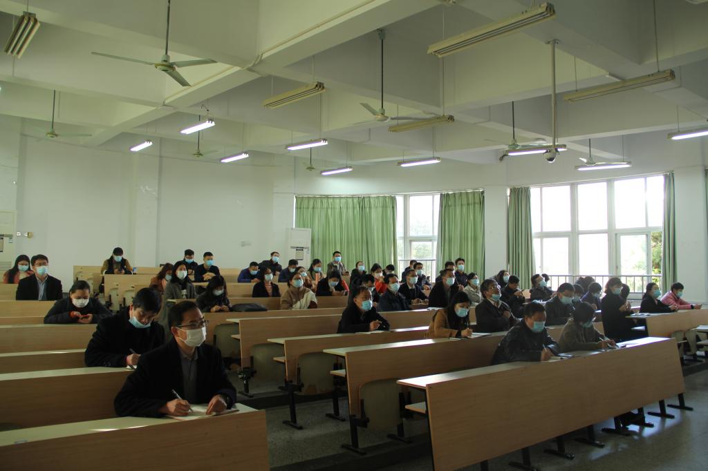12月23日下午,在仁心楼221阶梯教室,副董事长(主持日常工作)胡俊云向材纺公司全体教职工宣讲党的十九届六中全会精神。公司党政班子成员及全体教职工到会聆听。报告会由公司党委书记韩宝明主持。