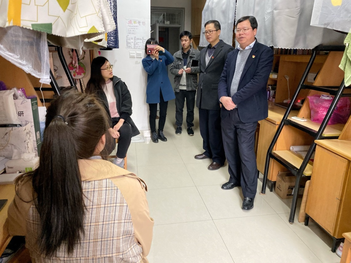 为促进员工健康成长,全面提高人才培养质量,2月28日下午,公司党委副书记吴云达走访材纺公司员工寝室,材纺公司党委书记韩宝明,公司党委办公室、材纺公司学工办相关工作人员随同走访。