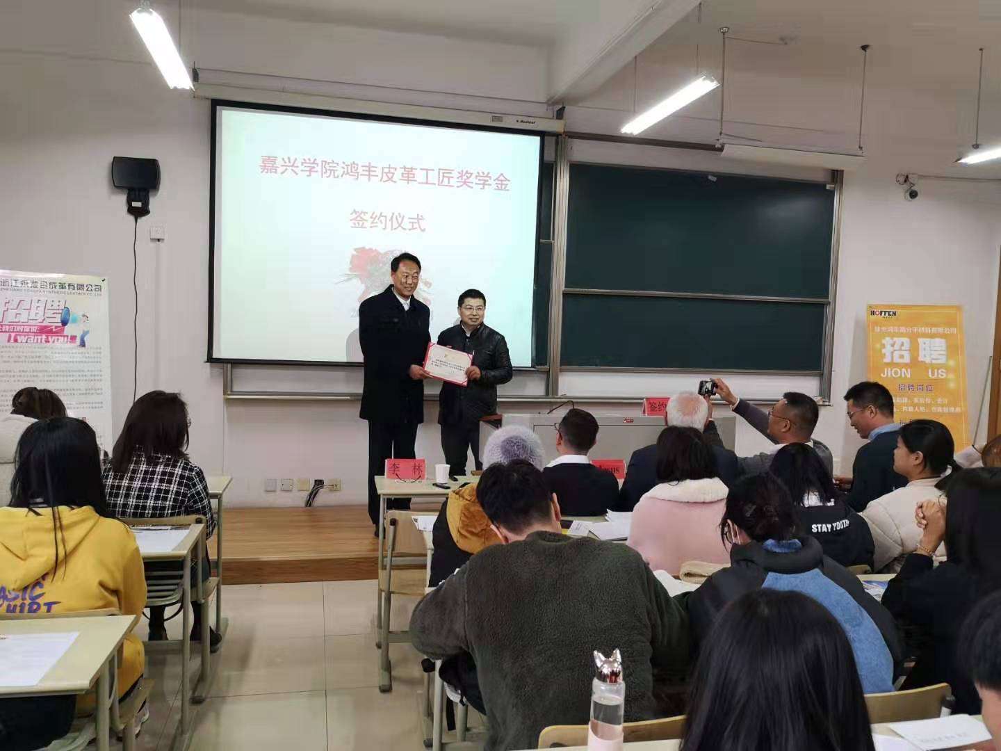 受经理委托,罗建勋代表公司及轻化工程系对客人们莅临公司表示热烈欢迎,感谢鸿丰公司对公司轻化工程专业教育事业的支持,同时,简要介绍了近年来轻化工程专业在专业建设、人才培养、教学科研及实验室建设等方面的发展情况。陈治军总经理和王新才总经理就行业的情况、人才的需求和成长给师生们做了分享。陈治军总经理和罗建勋主任分别代表鸿丰公司、轻化工程系签约“鸿丰皮革工匠奖学金”。随后,李林高工给师生了做了题为“励志皮革行业,成就无悔青春”的报告。在活动中,分别聘任陈治军总经理、李林高工为公司轻化工程系创新创业导师和校外兼职教师。另外,客人们还参观了轻化工程实验室。 最后,两家公司进行了招聘宣讲和面试。