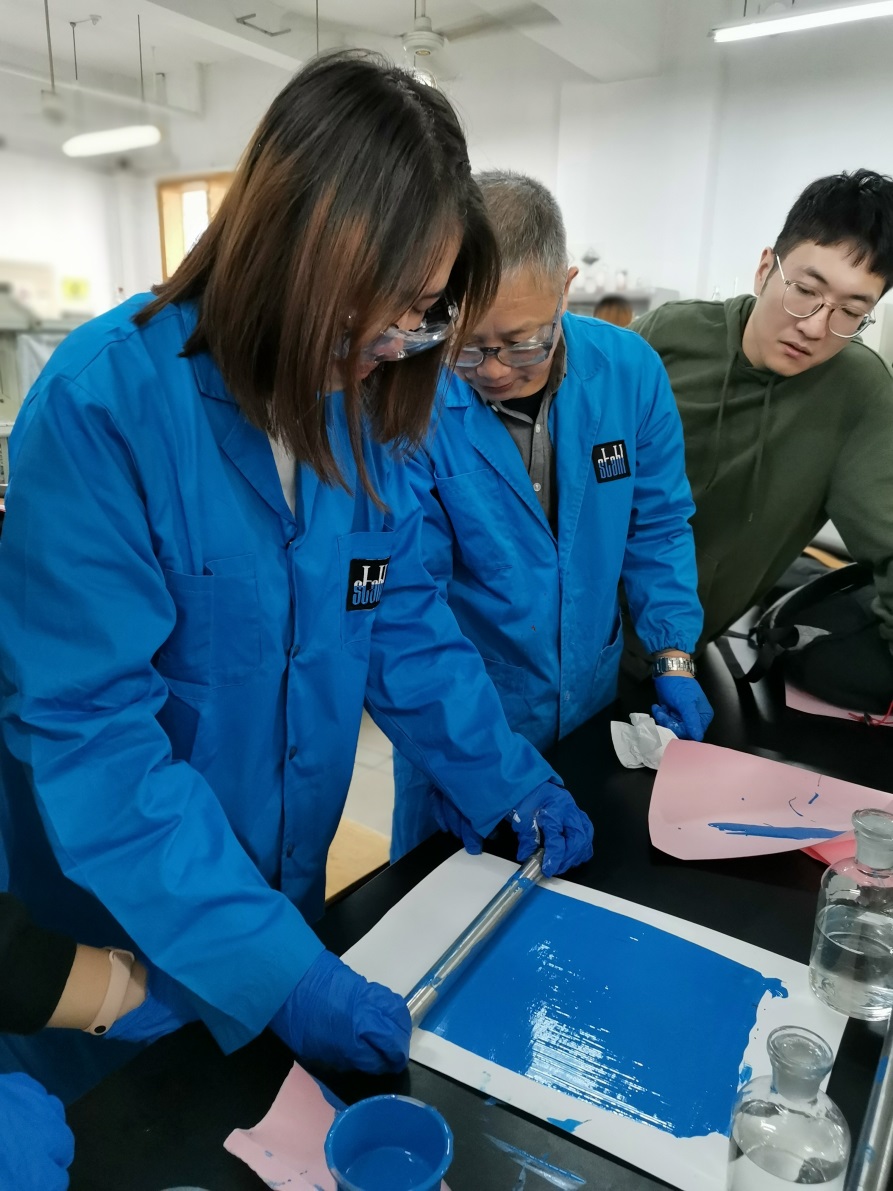 为了进一步加强课程改革、丰富专业建设内涵,应公司轻化工程系的邀请,斯塔尔精细涂料(苏州)有限公司郭祥经理、夏敏经理于10月21日来访公司并在5号楼轻化工程实验室(智慧实验室)给轻化工程专业毕业班员工作合成革的清洁化生产技术的报告和指导合成革的制作实验。报告由罗建勋老师主持,合成革的制作实验由许志老师和罗建勋老师全程辅助。