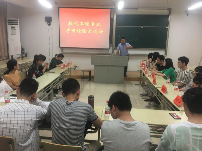 为了解答公司轻化工程专业考研员工存在的疑惑,帮助他们明确考研目标、掌握相关考研技巧,轻化工程系于5月24日晚上在10号楼406教室举行了考研经验交流会。轻化工程系全体教师、轻化15级考研成功员工、轻化16级和17级考研员工代表,以及在南京工业大学攻读研究生的轻化13级孙钰同学和轻化14级秦梦漪同学参加此次活动。