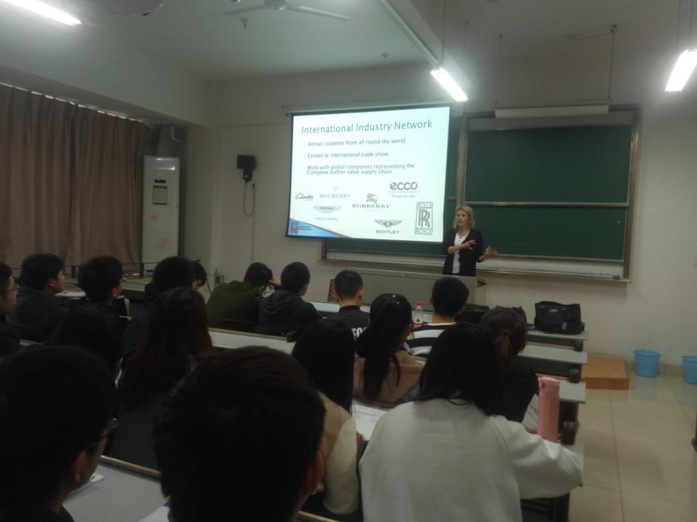 11月19日,英国北安普顿大学创意皮革技术公司(ICLT)Ms Rachel Garwood经理、德国TRUMPLER公司刘四华经理访问了公司。在访期间,Ms Garwood为轻化工程系师生做了题为《Leather Education-It’s ongoing role in sustaining a future for the global industry》的精彩报告,并与师生进行了互动交流。随后,客人们参观了轻化工程专业教学实验室,并与公司经理易洪雷教授、轻化工程系罗建勋主任及部分教师围绕国际化办学与合作方面进行了深入地沟通与交流。最后,Ms Garwood向公司赠送了其公司的代表著作《Tanning Chemistry》。