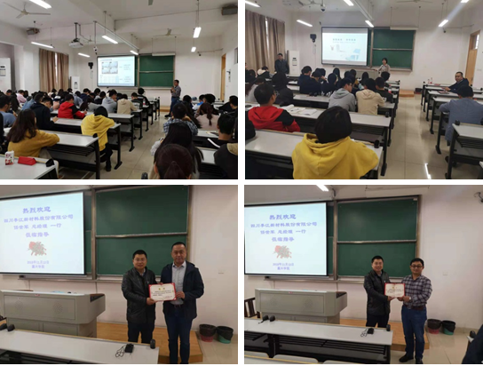 2018年11月13日,四川亭江新材料股份有限公司总经理任世军、技术研发部经理李靖博士、人力资源部胡经理一行来公司轻化工程专业招聘及交流。首先罗建勋主任代表轻化工程专业向任世军总经理、李靖博士颁发校外兼职教师聘书;随后,李靖博士为轻化工程专业全体师生做了主题为“无铬鞣研究最新进展——从研发到应用”的精彩报告,报告内容反映了数年来公司在新型无铬鞣剂研发方面的巨大投入及研发人员的辛勤付出;胡经理围绕公司的发展历程、薪资福利及人才培养需求等方面进行了细致讲解,会后及时了解了员工对工作的期望,并对轻化工程专业的部分员工进行了面试。