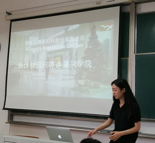 首先,浙江明新旭腾新材料股份有限公司高级人力资源部总经理庄孟冬女士就公司简介、实习岗位设置、实习要求、实习津贴等进行了介绍。其次,人事部经理刘刚先生就招聘流程进行了介绍,实习岗位共计28个(涉及轻化工程、工业设计、环境工程和物流管理等专业)。最后,两位经理先后对员工进行了笔试、面试。