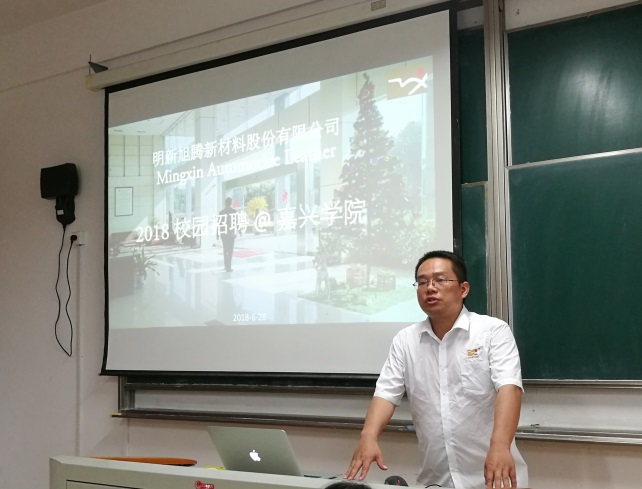 为了进一步加强轻化工程专业校外实践教学基地的建设,提高员工理论与实践结合的能力,公司轻化工程系特邀浙江明新旭腾新材料股份有限公司庄经理一行于6月28日上午在10号楼402召开暑期实习和就业招聘会。轻化(实验)151、轻化(实验)161、工业设计15级和环境工程15级员工参与了此次招聘会。