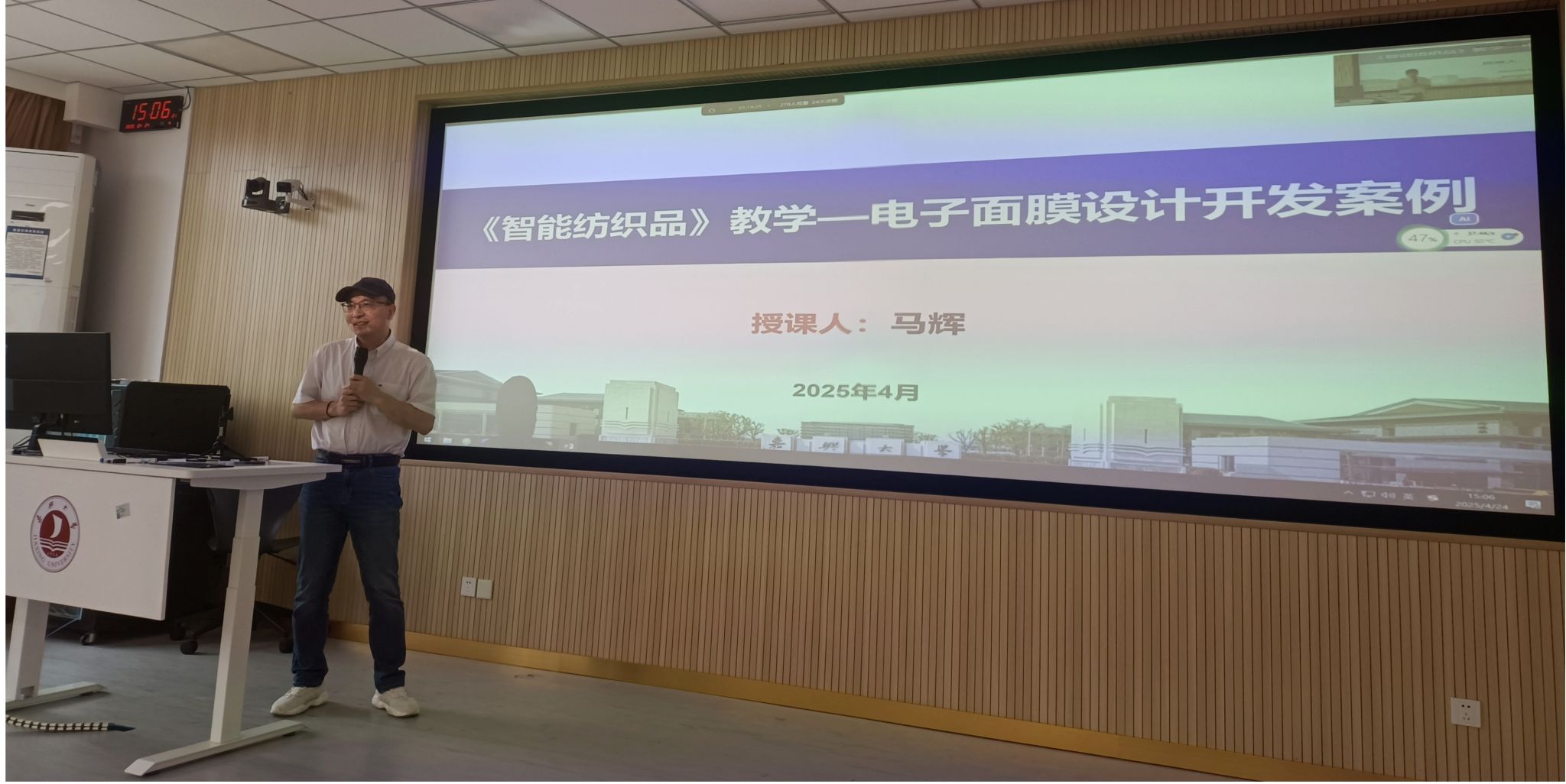 马辉教授以“《智能纺织品》教学—电子面膜设计开发案例”为题,详细介绍了电子面膜设计开发案例教学的实操全过程,从产品设计背景、研发、质检评价、销售、合作、成果展示等员工任务设置进行了详细说明。与会老师就案例教学法实施难度、员工参与度不均衡等问题进行深入交流。
