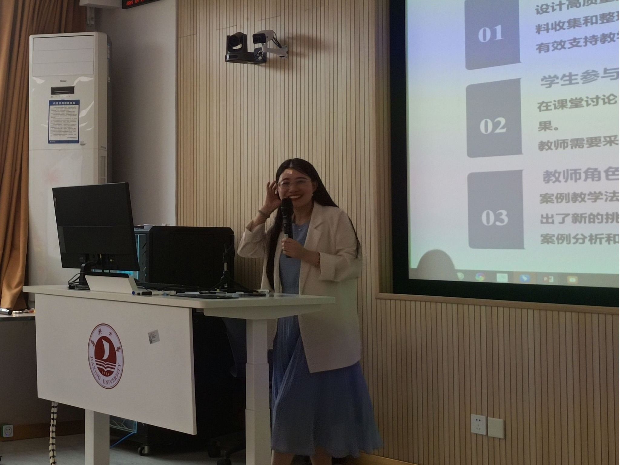 陈洪旭副教授以“案例教学法:理论与实践结合的教学模式”为题,从案例教学法理论历史演变、特点、教学备课和员工学习注意事项、应用案例等方面做了详细分享。