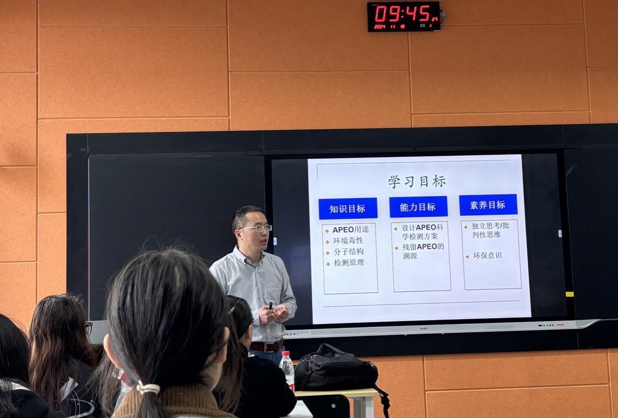 2024年11月18日上午,公司“一流课程系列公开示范课”本学期第二次公开课,在明德楼256教室开讲。本次公开示范课为校级一流课程《皮革与纺织品环保指标及检测》,由课程团队成员马贺伟主讲,云顶7610线路检测教师进行了现场观摩。