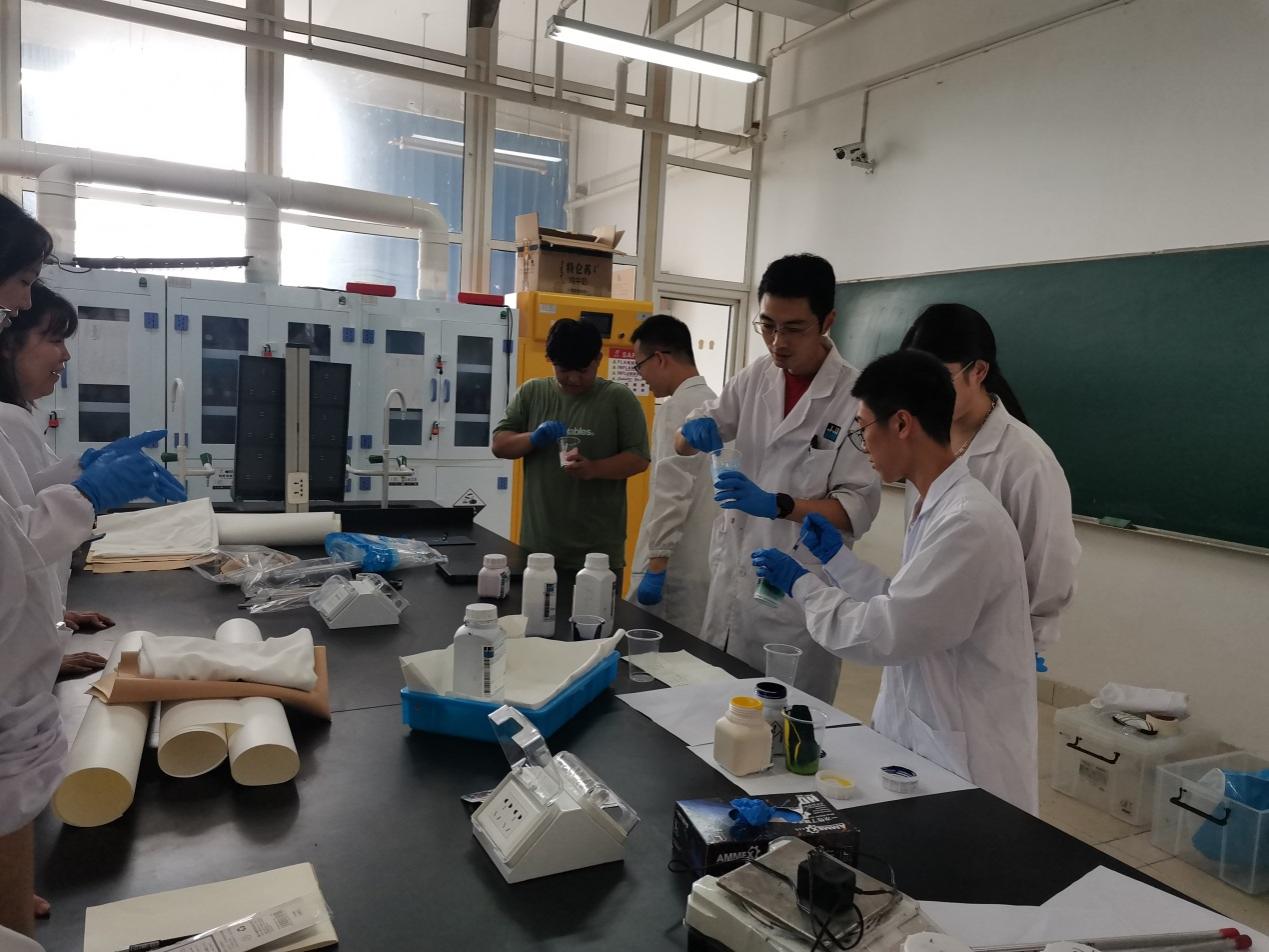 罗建勋老师致欢迎词并带领客人参观了公司轻化工程智慧实验室,介绍了公司轻化工程专业发展历程、现状及十四五发展规划。李克弯经理等就STAHL公司的发展历程、皮革涂饰、合成革制作技术等方面给师生们做了深入的讲解。随后,指导员工们进行合成革设计与制作实验,通过动手实操的切身体会,使每个员工充分学习与体会到合成革与天然皮革在制作工艺方面的异同。最后,进行实验成果展示和技术总结。