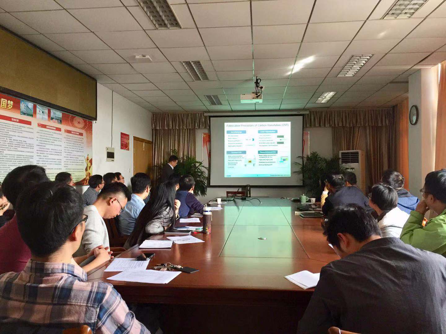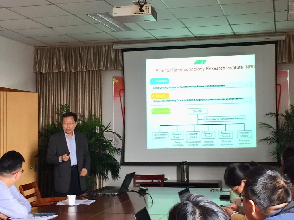 会上,洪淳亨院士从工作场地,组织架构,仪器设备,发展愿景等方面介绍了嘉兴公司纳米技术研究院,并就自己的研究内容和成果做了题为《Research and Development of Nanomaterials and Nanocomposites》的精彩报告。与会的各位教师也分别介绍了自己的研究内容和研究规划,并就相关的学术问题和洪院士展开了深入的探讨和交流。