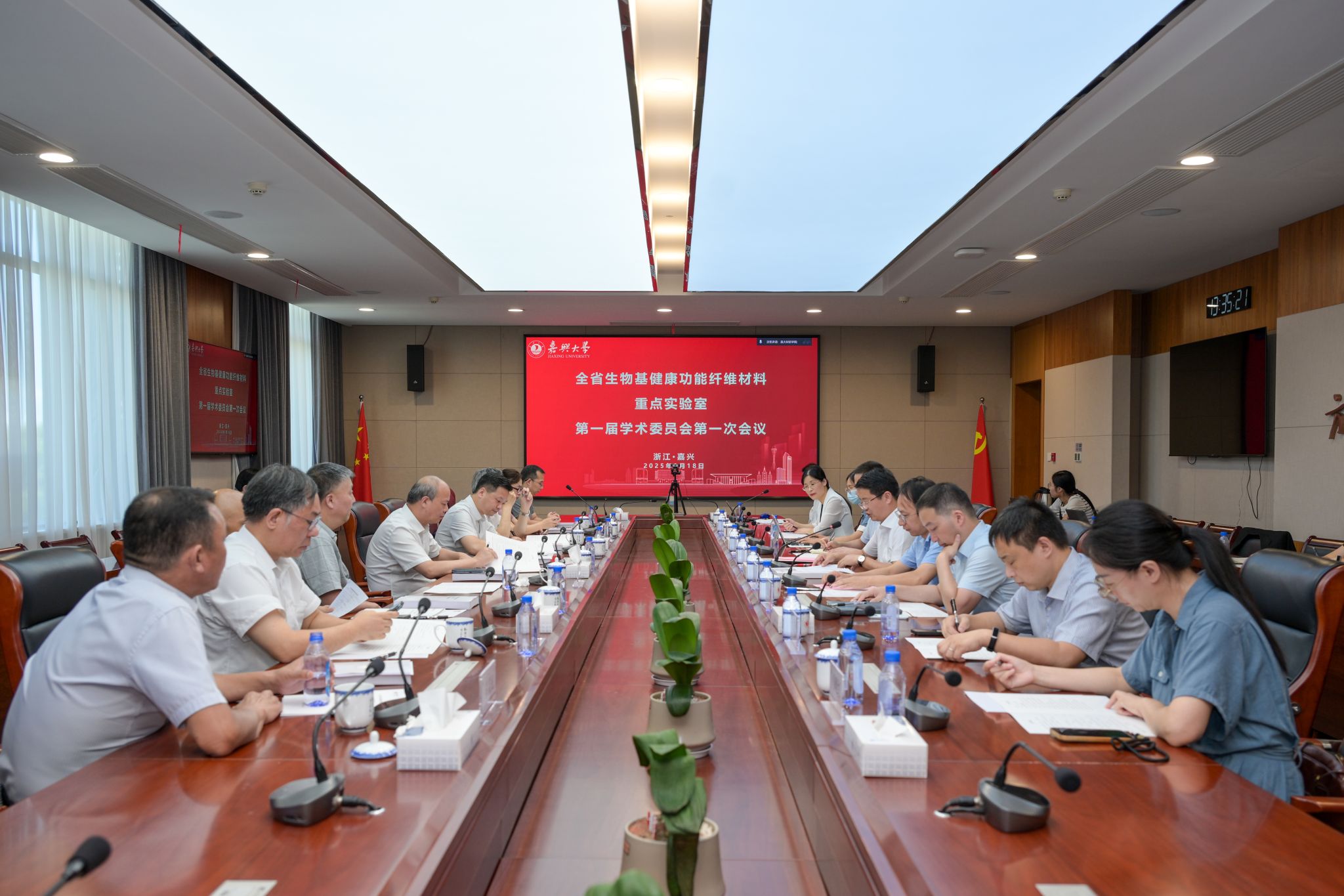8月18日,全省生物基健康功能纤维材料重点实验室第一届学术委员会第一次会议在公司举行。浙江理工大学董事长、学术委员会主任陈文兴院士,公司党委委员、副董事长於建明及全体学术委员会委员出席会议。