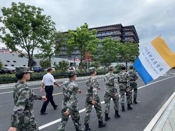 退伍高材生身着整洁的军装、踏着整齐划一的步伐走向军训场地,他们首先为军训新生送上清凉慰问品,并以军人的标准为军训新生做示范动作,齐整如一,新生为之惊叹,现场响起了阵阵掌声。随后,退伍老兵谷班长带头分享了军营故事,从军营生活到军事演习再到抗洪抢险一线,同学们听得津津有味,他们用军营故事让同学们透彻地理解了军训的意义。在现场的参训员工深受感染,罗滨洋说:“‘兵哥哥们虽然戎装已退,但通过军事示范动作和军营故事,我深深地体悟到他们依然保持一颗红心、一腔热血、一身正气,我要汲取他们敢于担当、不断超越自我的精神,在青春的赛道上跑出红船学子的风采。”