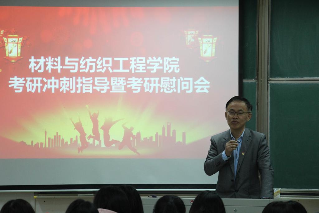 11月23日上午,材纺公司在闻道楼502教室召开2021届毕业生考研冲刺指导暨考研慰问会。材纺公司副经理黄立新、李海东、代正伟,各专业考研指导教师及100余位考研同学参加会议,会议由王晓莹主持。