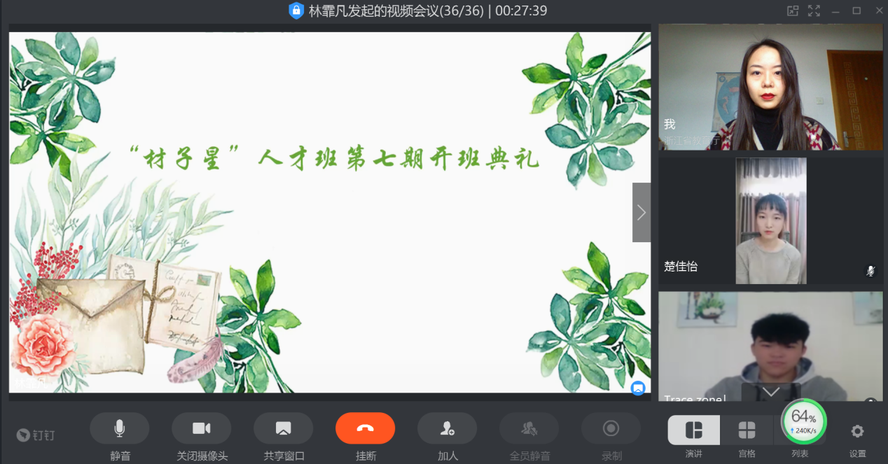 为深入实施青年马克思主义者培养工程,培养造就一批信仰坚定、素质突出、作风过硬的青年马克思主义者。3月29日下午14:00,材纺公司第七期“材子星”人才班以视频会议的形式正式开班。