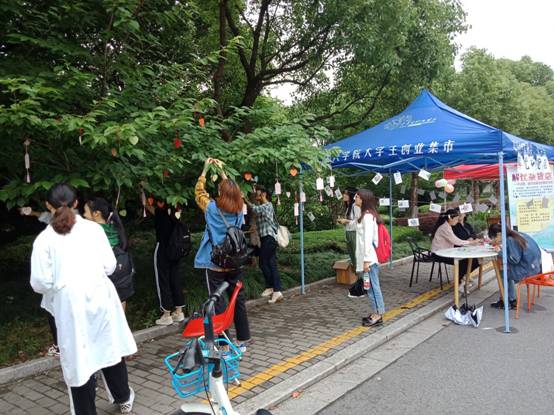上午10点,伴着丝丝细雨,活动正式开始。精心设计的海报,伞棚两侧悬挂的明信片和心愿卡,桌上的精美礼品吸引着过往同学驻足,在工作人员热心、细心、贴心的讲解下,有同学们将自己的心愿或烦恼写在精致的卡片上,并亲手悬挂于树枝上,也有同学将心里话写在明信片上,封存后交由工作人员派送。随后,我们通过现场心理游戏的方式抽取奖品。随着活动进行,参与的同学越来越多,过往的老师也参与到活动中来,借着心愿卡表达着对嘉院的祝福。