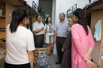 9月14日下午16:30,公司党委副书记吕延勤、云顶7610线路检测经理易洪雷走访材纺公司2017级新生寝室,深入了解他们的住宿情况。