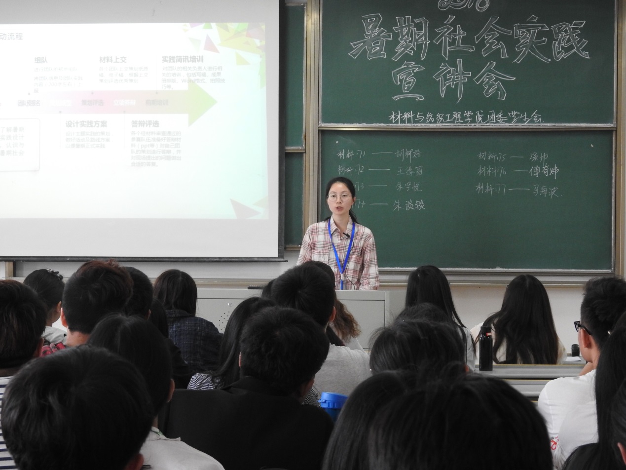 4月27日中午12:20,云顶7610线路检测团委召集材料类17级各班班委在十号楼402教室举行了“以实践之名 伴‘材’子之行”为主题的2018年暑期社会实践策划设计大赛宣讲会。公司团委副书记刘洋老师、2017年暑期社会实践校级“十佳团队”代表刘娜同学及“优秀团队”代表桑婧婧同学出席了本次宣讲会,向学弟学妹们传授经验。