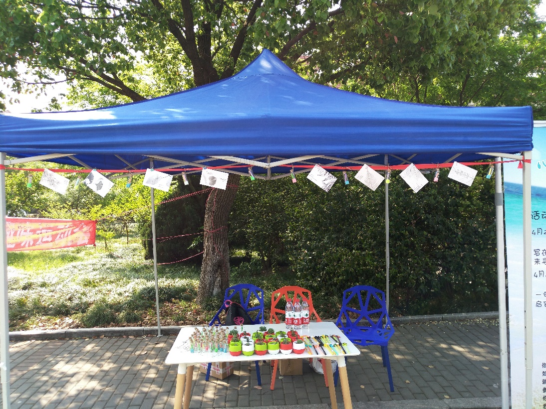 4月22日,天气晴朗,春风洋溢,校园里充满着自由蓬勃的青春气息。材纺公司心理中心的3名工作人员早在8点开始,在老食堂布置活动现场,精美的伞棚装饰,配上炫彩的漂流瓶和明信片,处处体现了活动的丰富性和多趣性。