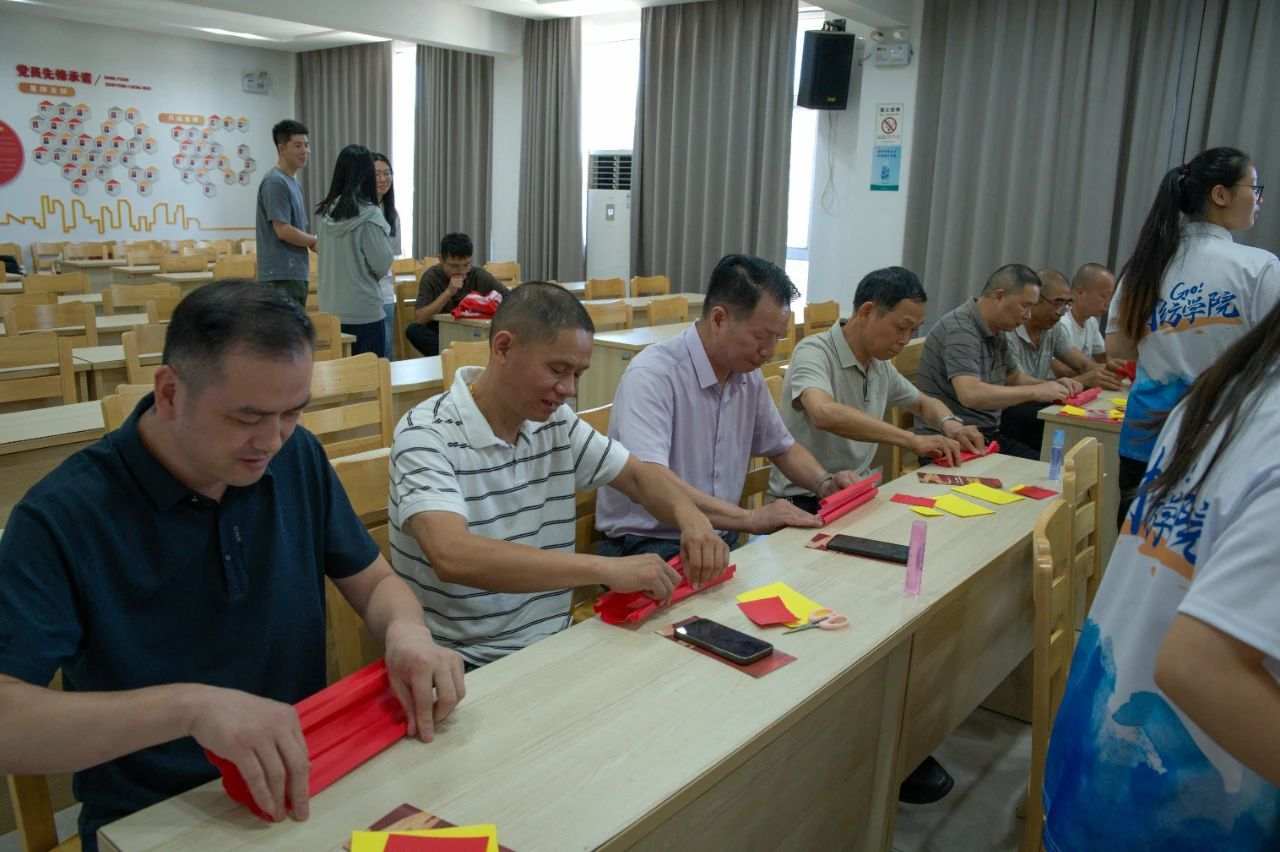 在银河社区,团队成员指导孩子们制作爱国手工挂件。