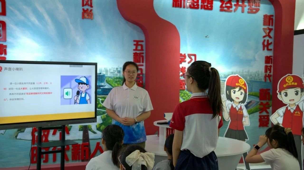 在新时代文明实践中心的“红领巾小讲堂”中,团队聚焦实操训练精选了五星的象征意义、国旗的标准比例、《中华人民共和国国旗法》的基础规定3个核心知识点,用情景问答、实物对照等方式帮助80余名小员工轻松掌握。指导小朋友模拟宣讲时,重点纠正漏讲象征意义、混淆尺寸比例等问题,再通过分组互讲与现场点评,让每个孩子都能清晰准确地讲解国旗知识。