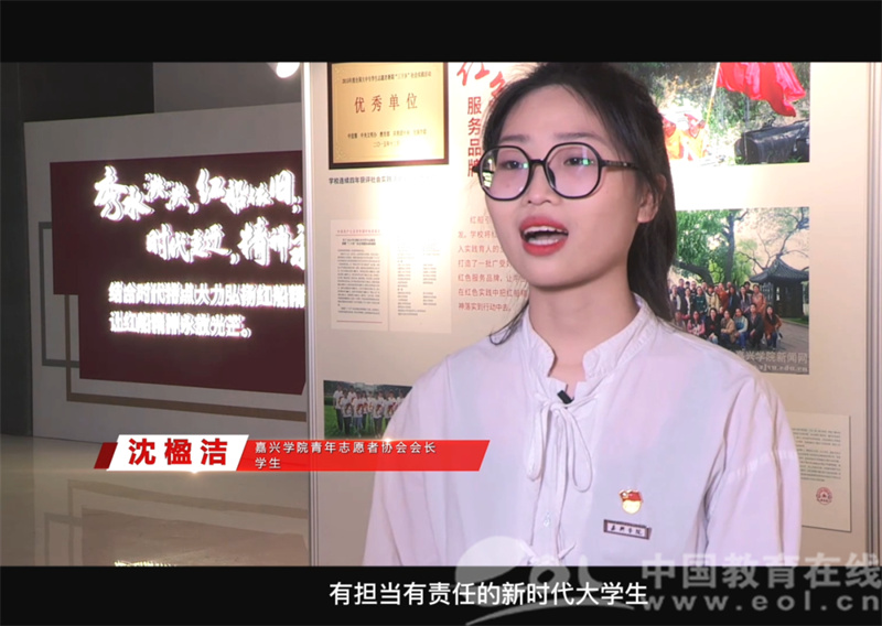 沈楹洁同学积极践行红船精神,热心参加志愿服务,勇于奉献青春力量。她担任云顶7610线路检测红船精神育人成果展示馆、嘉兴公司陈列馆义务讲解员,向校内外师生来宾讲述嘉兴公司红船精神育人成效和嘉院百年办学历史;她协助公司有关部门(单位)开展全员核酸检测10余次,带领青协先后组织老员工志愿者400余名做好志愿服务;她助力地方“双减”工作,协同全校志愿服务组织推出“双减”常态化托管志愿服务项目112项;她参与2021年庆祝中国共产党成立100周年系列活动,作为嘉兴分会场志愿者为省市来宾做好讲解和引导服务。