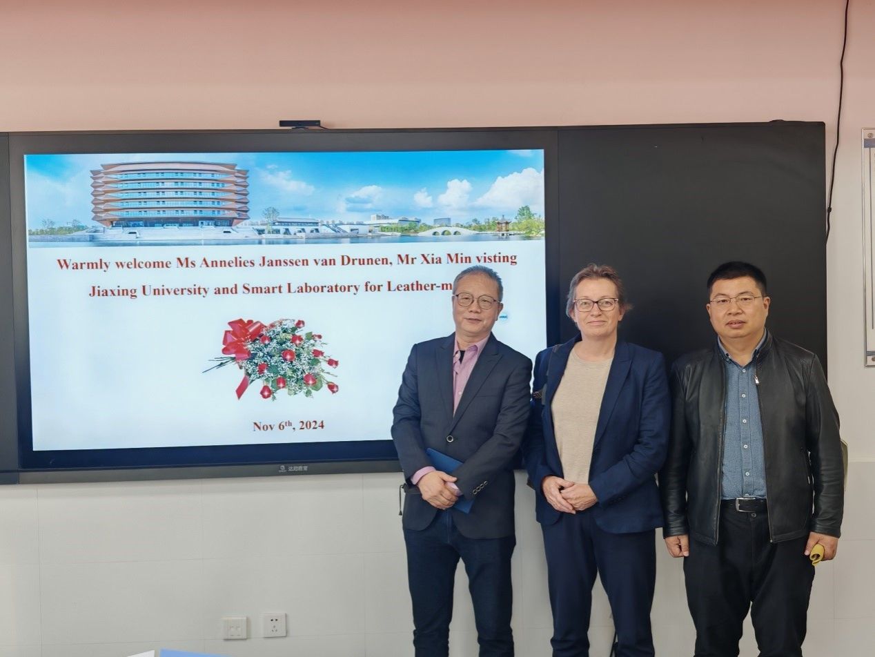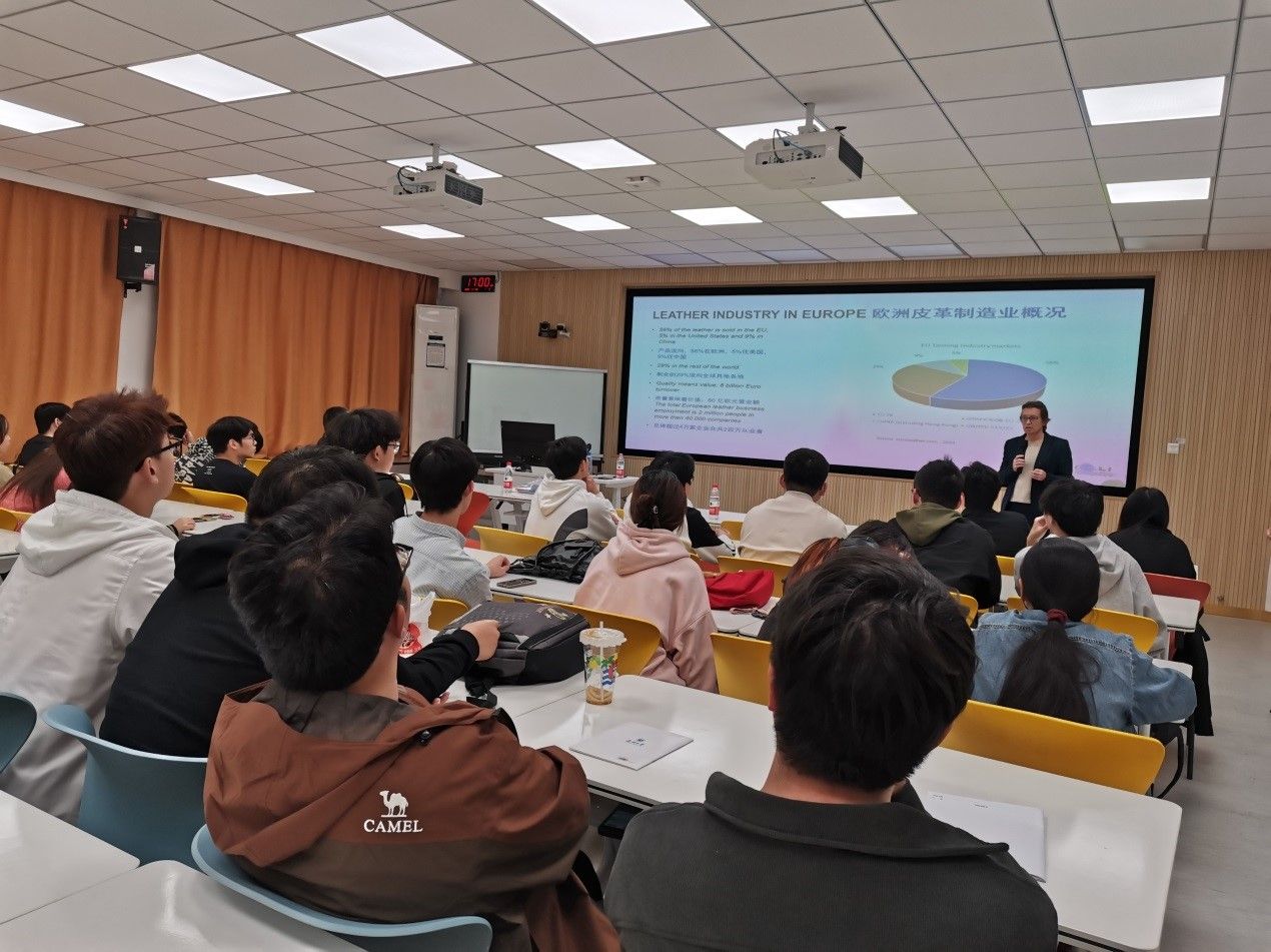 首先,Annelies总经理一行参观了轻化工程智慧实验室。罗建勋老师对客人的到访表示热烈欢迎并介绍了公司轻化工程发展的现状、取得的成绩和未来发展规划。马贺伟老师介绍了智慧实验室的布局和功能及在人才培养过程中发挥的重要作用。随后,Annelies总经理就STAHL公司及其公司的相关情况进行了简要的介绍,并做了以“Evolution in products at Stahl”“Leather industry in Europe”“Automative market and the 2024 Tanners business confidence survey”等为主要内容的报告。最后,她和与会师生进行了互动交流,并就校企合作的国际化课程的实施情况进行了深入交流。罗建勋教授代表轻化工程系向Annelies总经理颁发了客座教授的聘书并赠送了公司轻化工程系皮革文创产品。