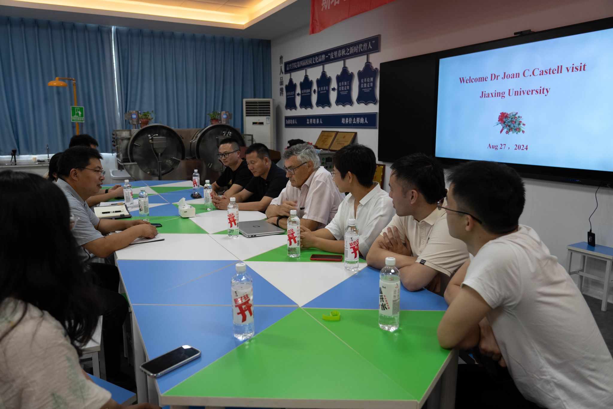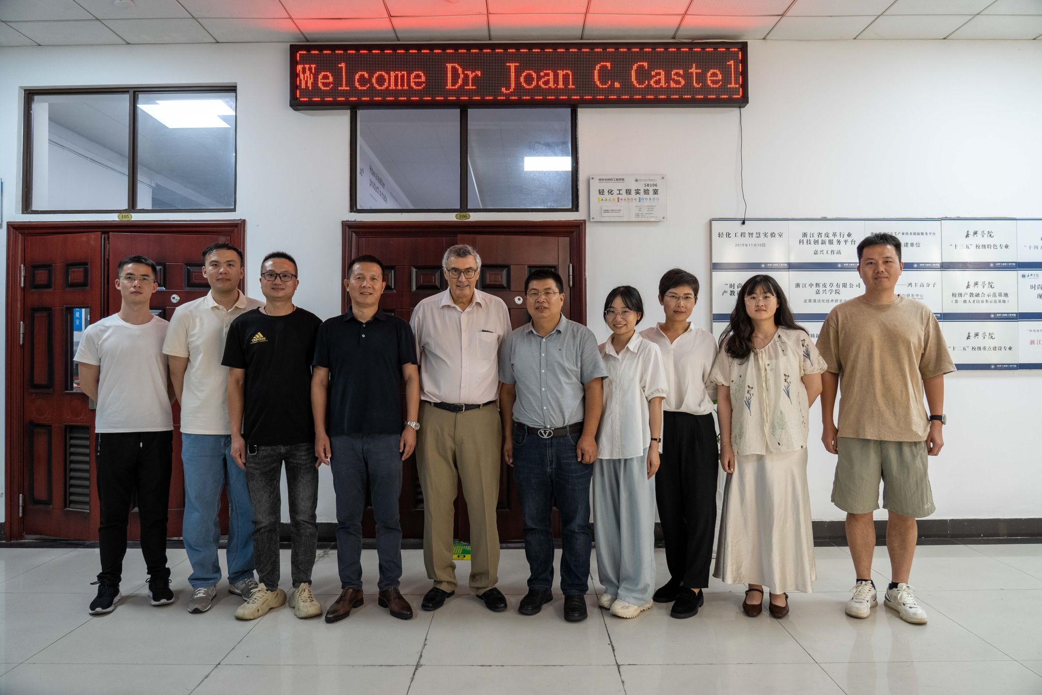 期间,Dr Joan C.Castell一行参观了公司轻化工程智慧实验室,并在现场讨论和拍摄了双方合作的国际化课程。另外,与会人员一起走访了浙江富卡科技有限公司、桐乡市高桥皮革有限公司等轻化工程专业产教融合校外基地。