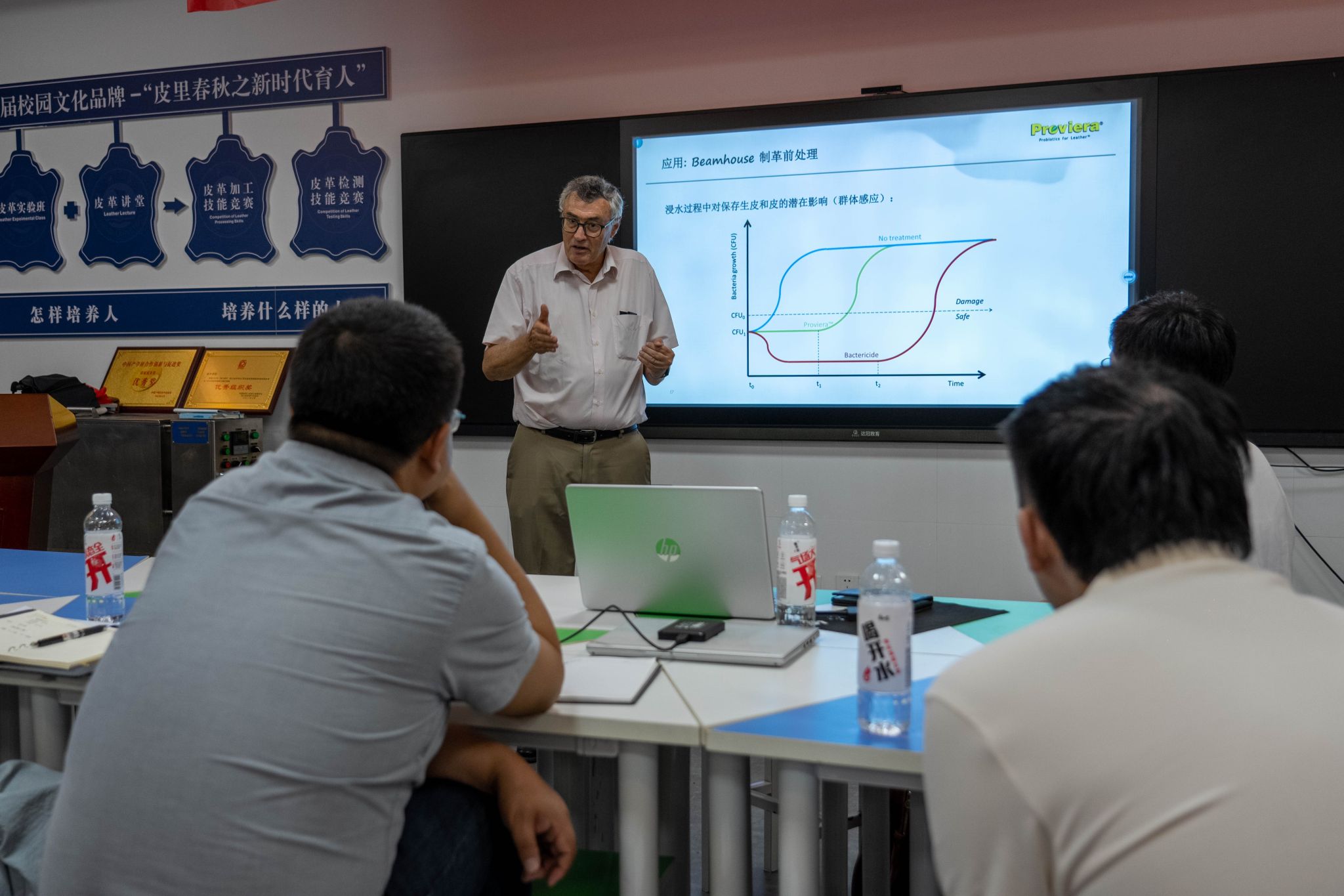 首先,罗建勋教授对Dr Joan C.Castell一行的来访表示热烈欢迎,简要介绍了公司轻化工程专业办学十六年来在人才培养、科学研究、服务行业、国际交流等方面取得的成绩和基于专业特色发展与内涵建设而形成的教学品牌、发展道路等。随后,Dr Joan C.Castell以“Proviera系列生物基新材料在清洁化制革生产中的应用”为题做了报告,指出生物基材料的研发和应用是皮革生产的新需求。