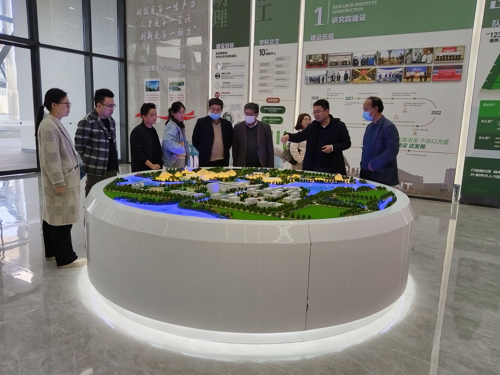 首先,长三角洲研究院副经理于导华向公司统一战线成员代表,从研究院建设历程、人才队伍建设、人才培养模式、科技创新成果等四个方面高起点、高标准、高质量建设北京理工大学办学功能拓展区总体情况,并带领大家逐一参观了图书馆、会议室、实验室、食堂、教工及员工公寓等首期建成的校舍。校舍空间开阔,员工研习条件一流,功能性设施智能程度高,绿化立体性强,给统一战线成员留下了深刻印象。