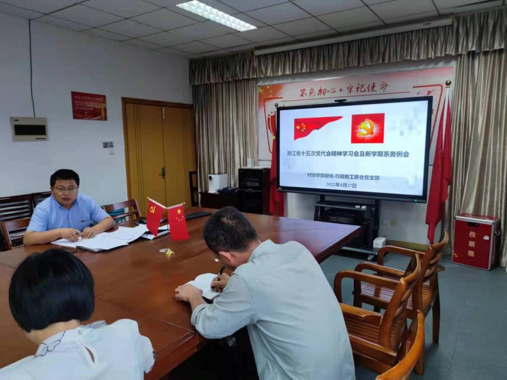 827日,公司轻化-行政联合教工党支部在崇礼楼419会议室举行浙江省十五次党代会精神学习会。支部全体党员参加会议,部分非党员教工列席会议。会议由党支部书记罗建勋主持。