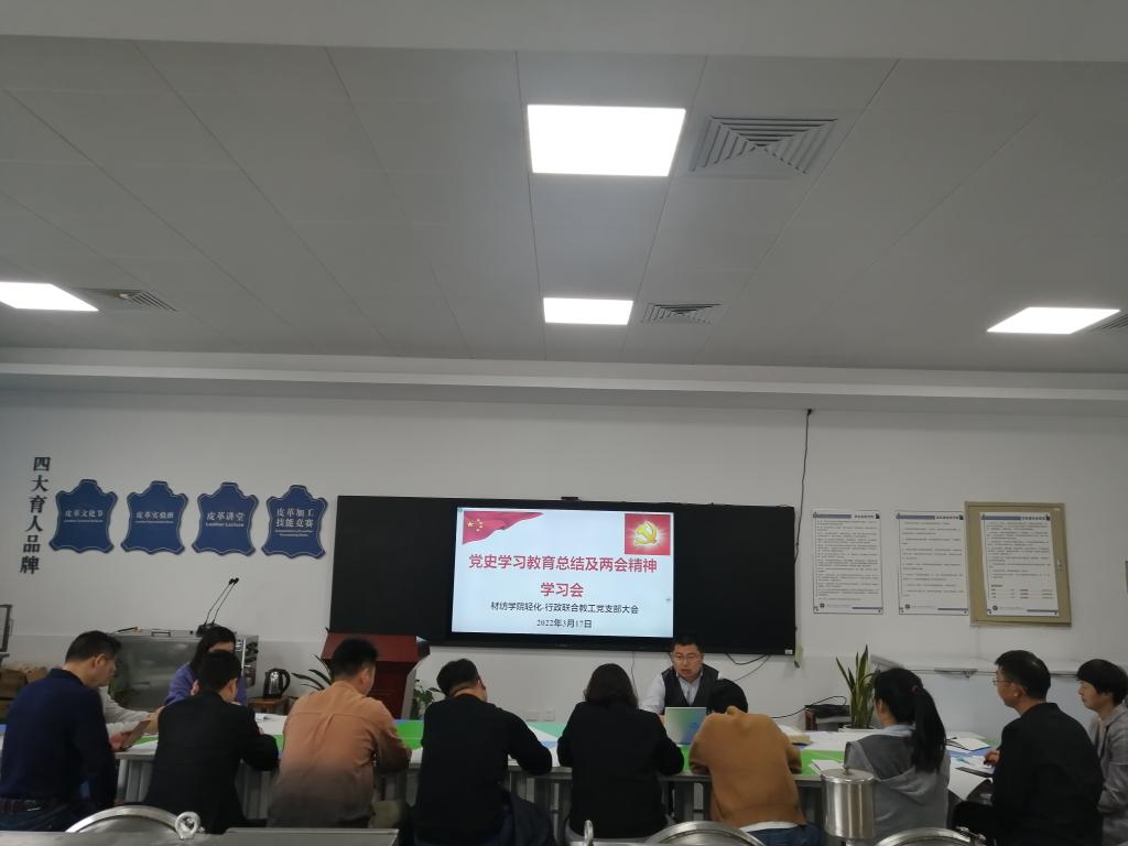 3月17日,公司轻化-行政联合党支部在轻化工程智慧实验室召开党史学习教育总结及两会精神学习会。支部全体党员参加了会议,部分非党员教工也列席了会议。会议由党支部书记罗建勋主持。