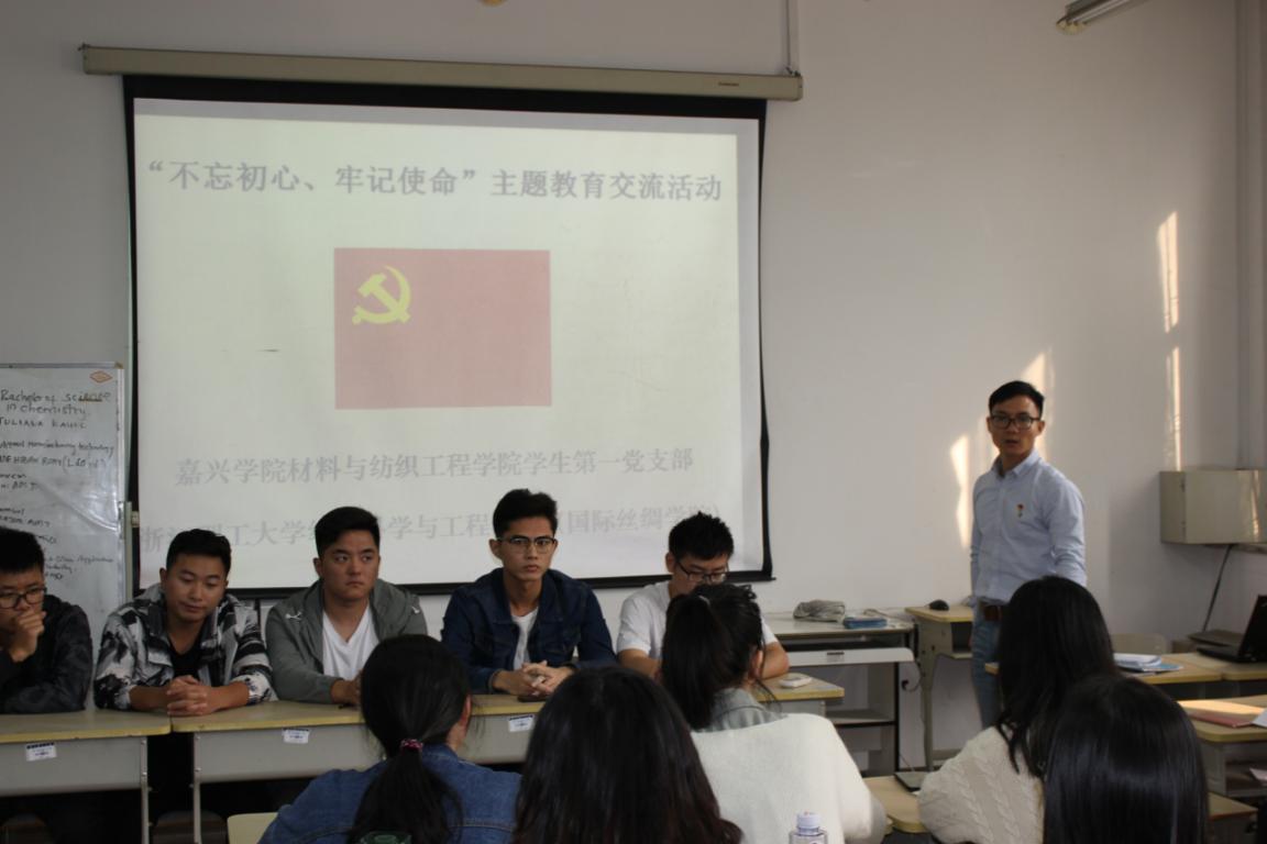 为加强党支部之间协同共建,实现党组织优势互补,共同推进支部“不忘初心、牢记使命”主题教育向纵深发展,10月23日,公司员工第一党支部与浙江理工大学研究生纺织工程第二党支部开展结对共建活动。