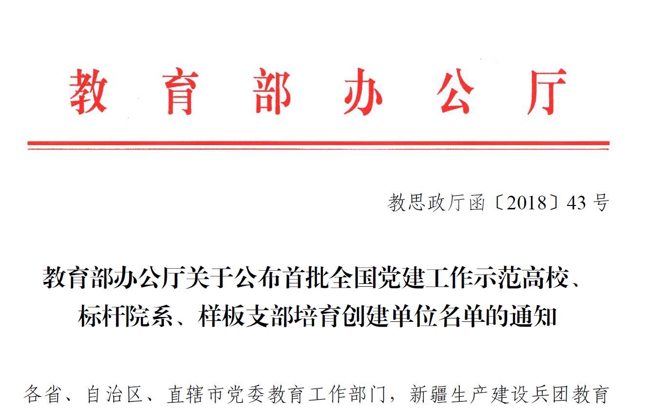 近日,国家教育部办公厅公布了首批全国党建工作示范高校、标杆院系、样板支部培育创建单位名单。公司教工第二党支部入选“全国党建工作样板支部”培育创建单位。
